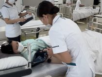 【看護科】『基礎看護』の授業で「血圧測定」の技術テスト☆彡
