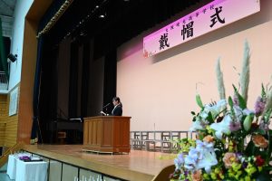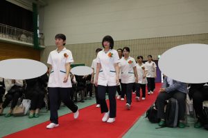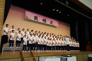 戴帽生は「戴帽の儀」の後、決意を表明し、『笑顔』(いきものがかり)を心を込めて合唱しました。