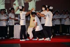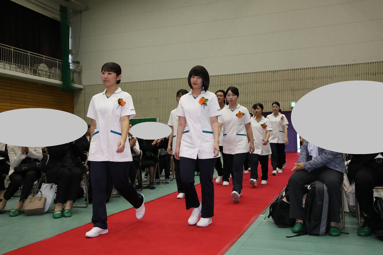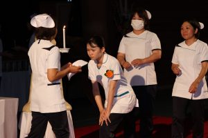 戴帽式は、クリミア戦争において傷ついた兵士たちをロウソクの灯りのもとで看護し続けたナイチンゲールの精神を受け継ぎ、看護の道を志す者がその使命と責任を自覚する、看護学生にとって重要な節目の儀式です。