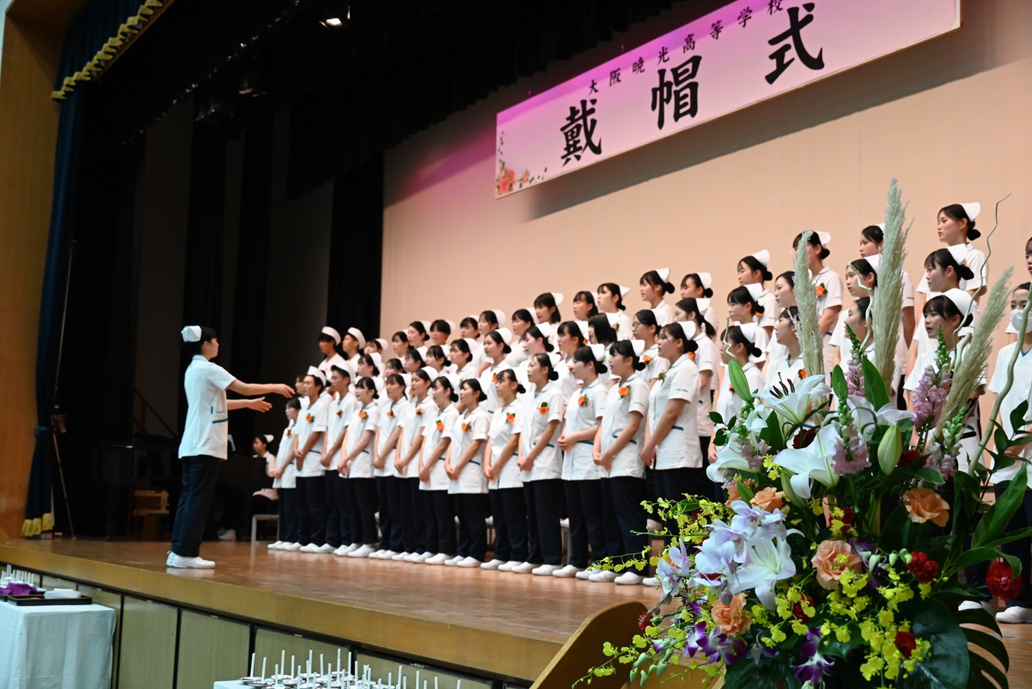 大阪暁光高等学校の最新ニュース・イベント情報をお届けします!11月1日(土)、本校総合館にて、看護科第12期生の戴帽式(たいぼう)を挙行いたしました。