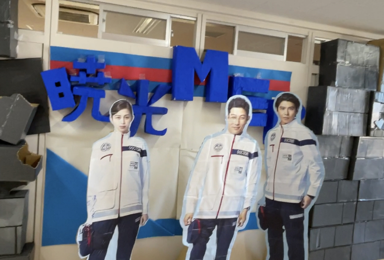 模造紙、工夫を凝らした装飾、そしてテーマに合ったオブジェ(原爆ドームなどの作品)は、暁光高校の文化祭の風物詩になっています。