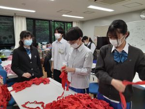 再来週に本番が迫った体育大会に向け、昨日は生徒有志でハチマキを準備しました。