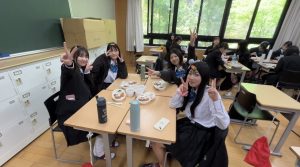最初のメニューは「カツカレー」。笑顔溢れる楽しい昼休みとなりました!😊