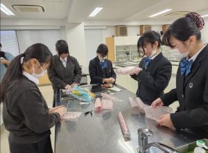児童労働ではないフェアトレードのチョコレートを全校にアピールしようとフェアトレードのチョコレートを使ったチョコクランチバークと国産小麦を用いたチョコクッキーを作りました!