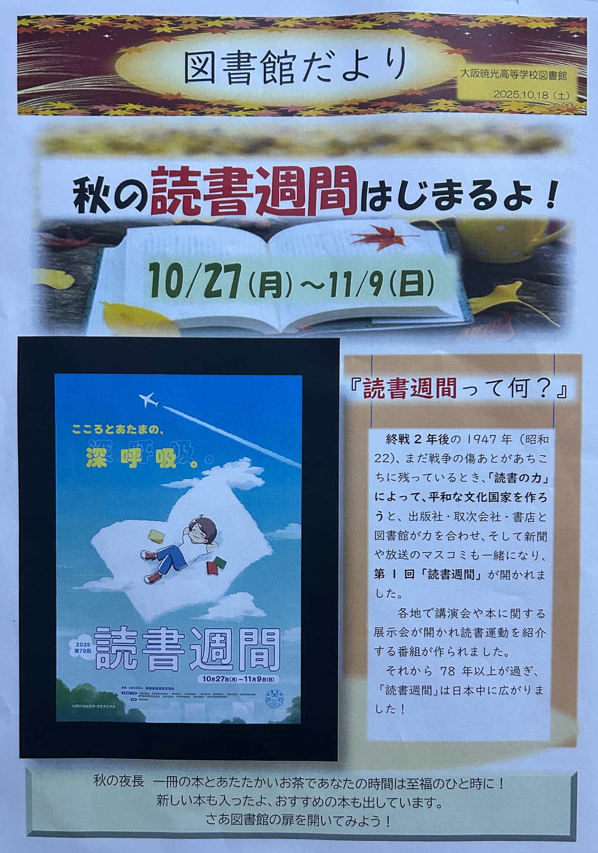 10月27日(月)~11月9日(日)は「秋の読書週間」💕