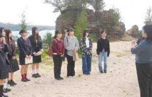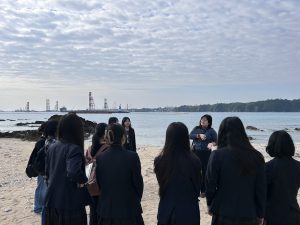 まず県の方に案内していただき、アメリカ軍の新基地建設がすすめられている辺野古を訪れ、建設に反対する方々の活動も見学させていただきました。また途中から、沖縄県立美里高校の生徒のみなさんとも合流し、共に学びました。