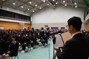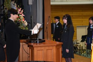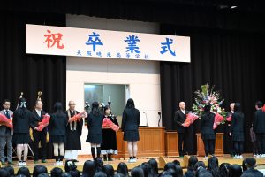 最後に教員が『ふるさと』(嵐)の合唱を贈り、感動的な式典となりました。