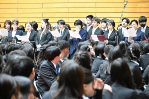 最後に教員が『ふるさと』(嵐)の合唱を贈り、感動的な式典となりました。
