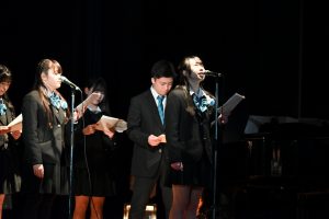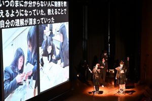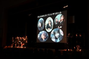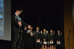 第一部の卒業証書授与に続き、第二部では、3年間の歩みを詩と約800枚の写真でつづった『構成詩』を卒業式運営委員の生徒たちが朗読しました。