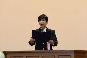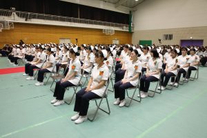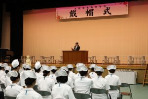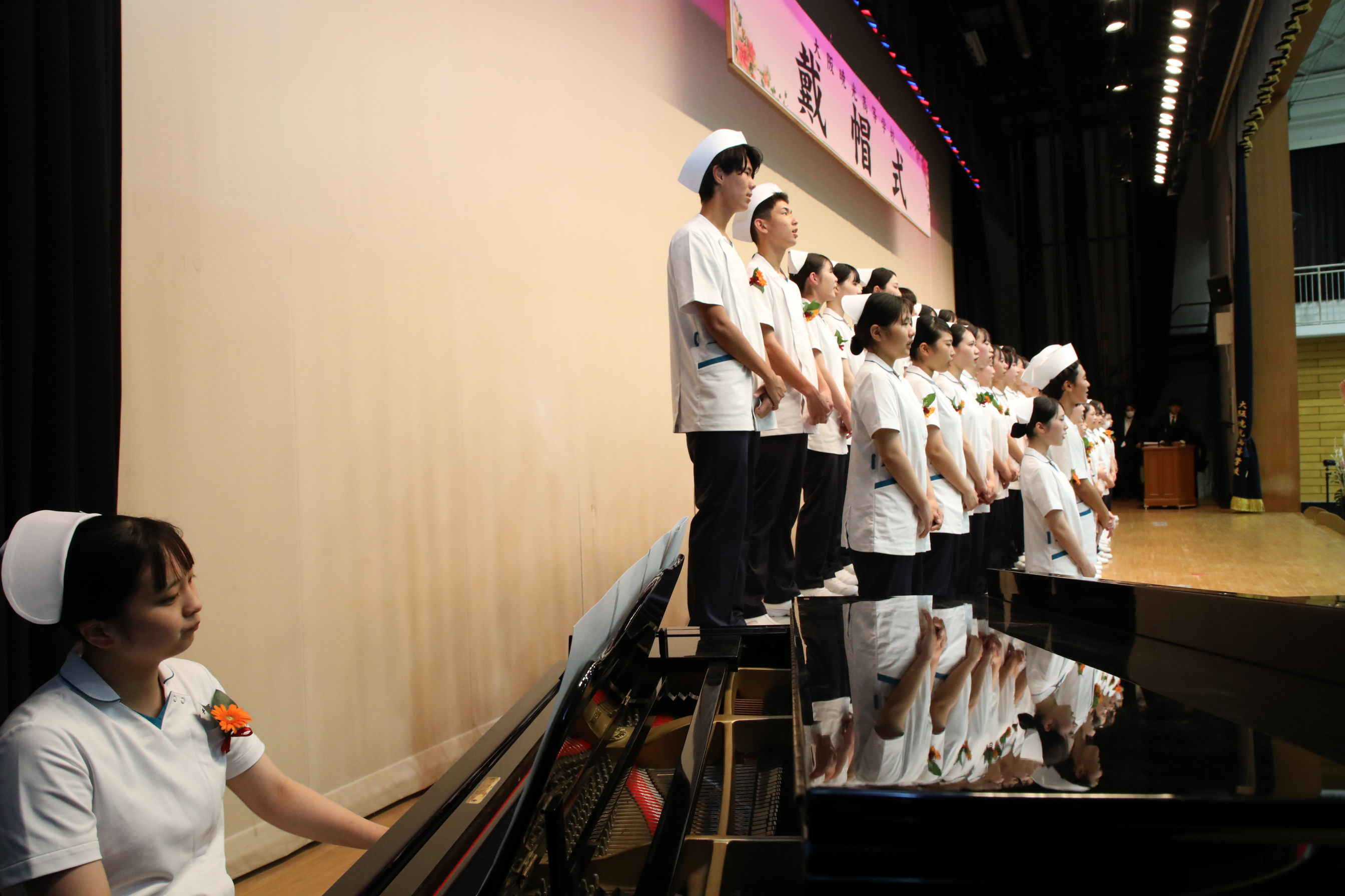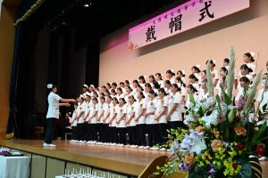 戴帽生は「戴帽の儀」の後、決意を表明し、『笑顔』(いきものがかり)を心を込めて合唱しました。