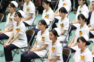 戴帽式は、クリミア戦争において傷ついた兵士たちをロウソクの灯りのもとで看護し続けたナイチンゲールの精神を受け継ぎ、看護の道を志す者がその使命と責任を自覚する、看護学生にとって重要な節目の儀式です。