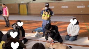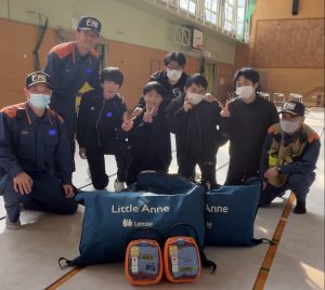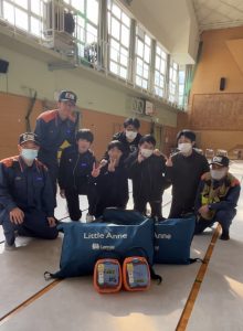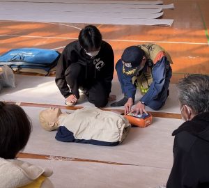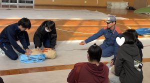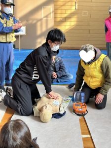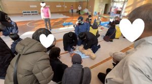 本校からは看護科の学生5名が指導者として参加し、消防隊員の方と一緒に緊急時のAED処置について実演を行いました(^^)/