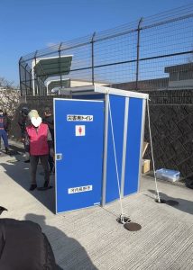 「震度6の巨大地震が朝8時30分に発生し、多くの建物が倒壊し火災も発生した」という想定のもと、9時前には大勢の住民の皆さんが避難してきました。