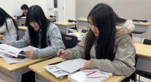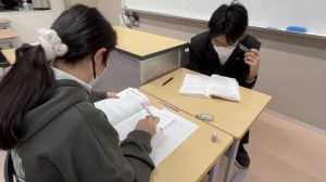 看護専攻科2回生(5年生)は、連日夜7時まで残って、教え合い励まし合いながら国家試験対策のグループ学習をおこなっています!