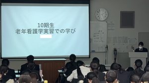 1月13・14日、4年生(看護専攻科1回生)は、12月に実施した『老年看護学臨地実習(病院実習)』の報告会をおこないました!