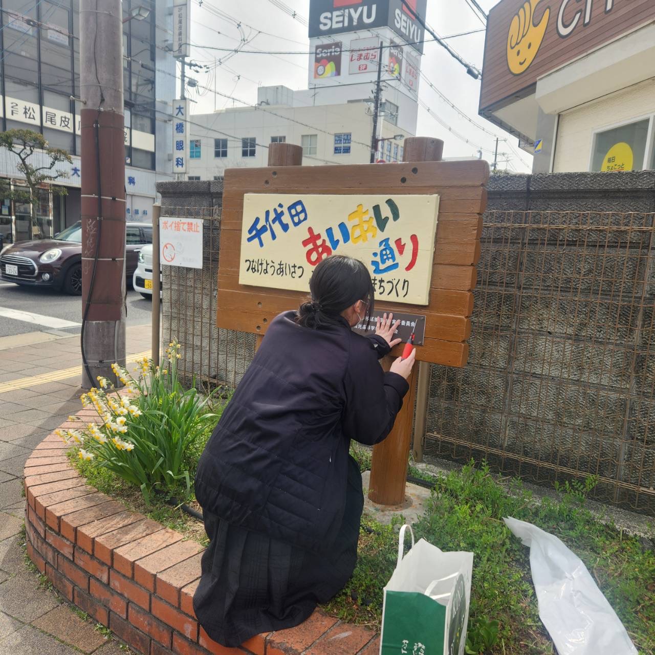 【ボランティア部】「千代田あいあい通り」の看板を付け替えました!