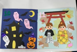 『子ども探究』の授業では、毎月の行事やイベントを、折り紙や画用紙を使って表現しています。