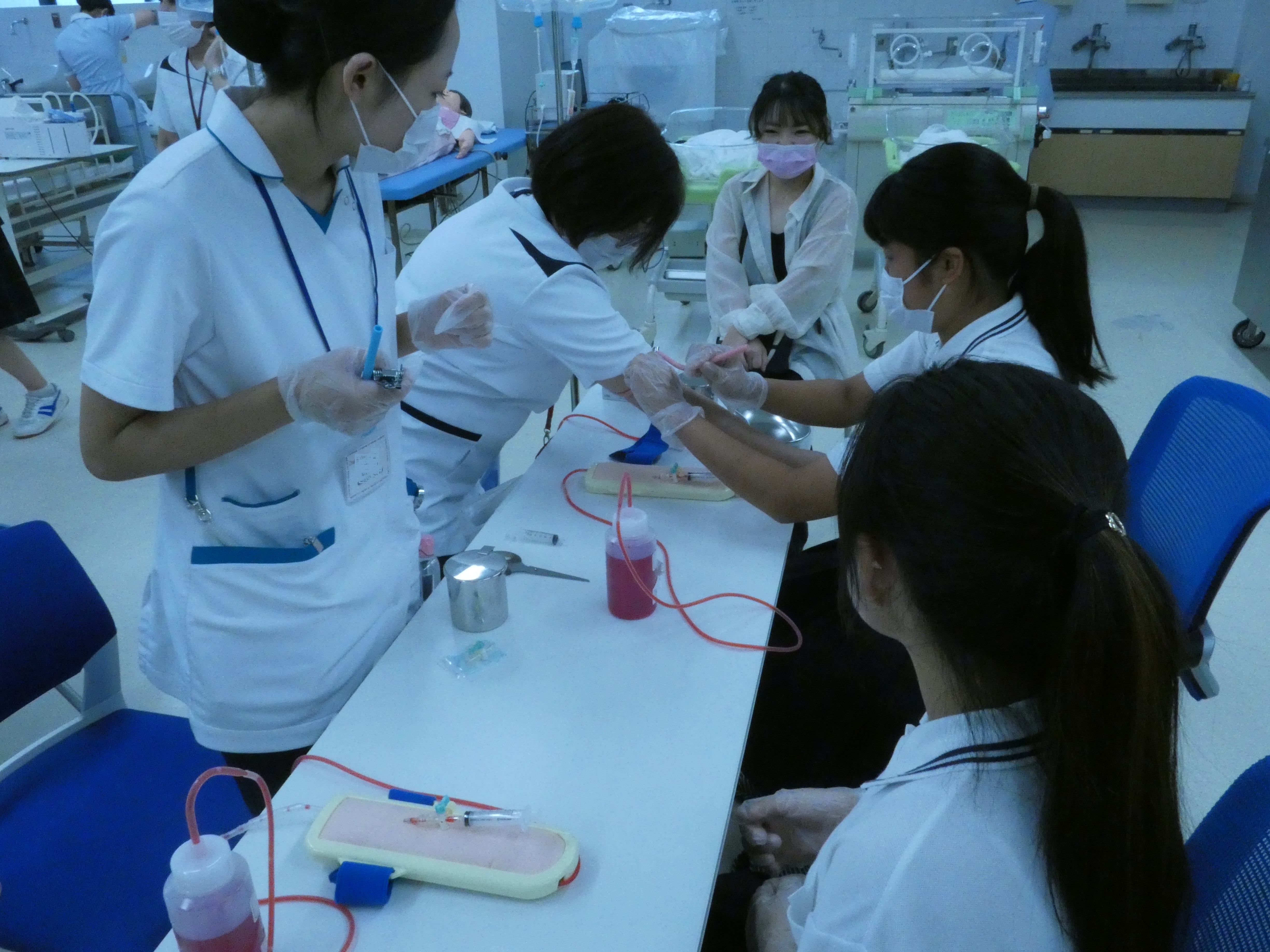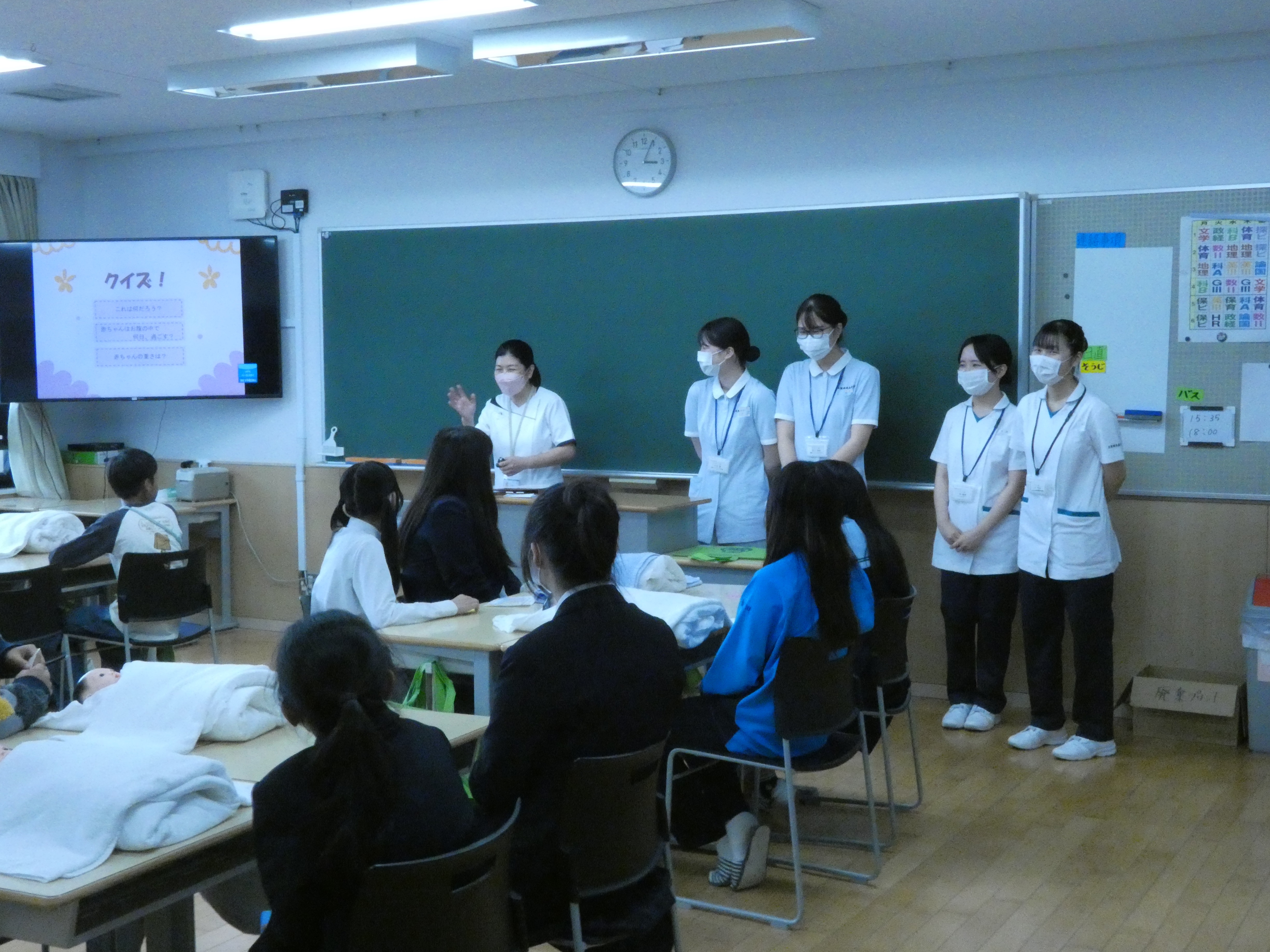 体験授業では毎回人気の「赤ちゃんのお世話」だけでなく「解剖生理学」や「コミュニケーション論」などの授業だけでなく、本校の実習設備を用いた「看護師体験」や「在校生による看護科の高校生活紹介」などの講座を開催!!